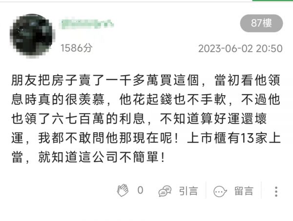 有当医生的网友,直接贷款4000万新台币买澳丰,认为一时的高杠杆最终一定能换来巨大的利息收益。
