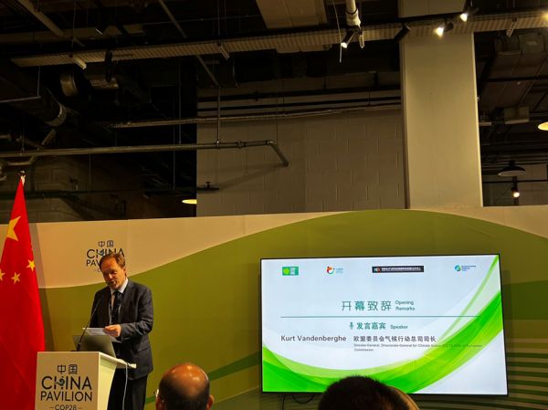 欧委会气候行动总司司长范登贝尔格在中国碳市场边会上发言。摄影/韩舒淋