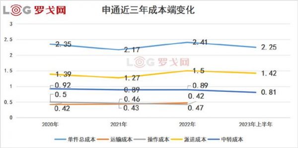 不难看出,在时效竞争中,“半日达”已成为国内三大物流巨头的核心焦点。成本方面,以三通一达为例,2023上半年,中通单票营业成本为0.89元(不含派费),对比22年下降0.14元;圆通单票快递产品成本2.19元,对比22年下降0.19元;韵达单票总成本为2.21元,下降0.13元;申通单票总成本2.25元,下降0.16元,其中单票派费成本1.42元,下降8分,而单票中转成本0.81元,也下降了8分。