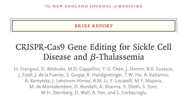 [2] CRISPR-Cas9 Gene Editing for Sickle Cell Disease and β-Thalassemia. NEJM (2023). DOI: 10.1056/NEJMoa2031054
