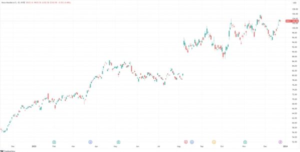 (诺和诺德股价在一年多的时间里翻了一倍,来源:TradingView)