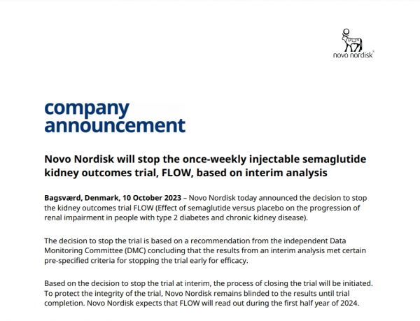 诺和诺德在今年10月宣布,中止一项针对Ⅱ型糖尿病和慢性肾病患者的司美格鲁肽试验,因为一项早期分析清楚地表明该药物有效,具体的数据将在明年上半年发布。与之前的情况类似,礼来也在进行替尔泊肽与肾病的研究。