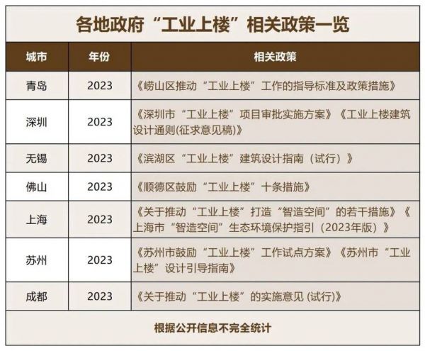 一些与会人士谈到,“深圳引爆了今年‘工业上楼’的旋律”。于是我们看到,更多城市开始跟进出台鼓励“工业上楼”的政策。