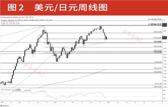 突破/收盘低于139.60至140.00区域,可能会推动美元/日元跌至136.70,下一个关注区域在132.60(38.2%斐波那契回撤位)至133.90。未能守住2023年3月低点(129.65)则看向2023年低点(127.23),但回升至146.70(78.6%斐波那契回撤位)上方,则重新关注2022年的高点(151.95),接下来过往出现过的点位是1990年7月高点(152.25)附近。