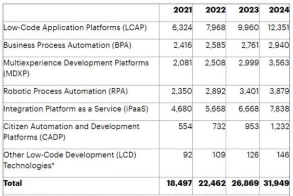根据Gartner预测,到2023年结束,全球低代码市场规模预计将达到269亿美元;到2025年,预计有70%的企业数字化应用,将都由低代码平台构造。