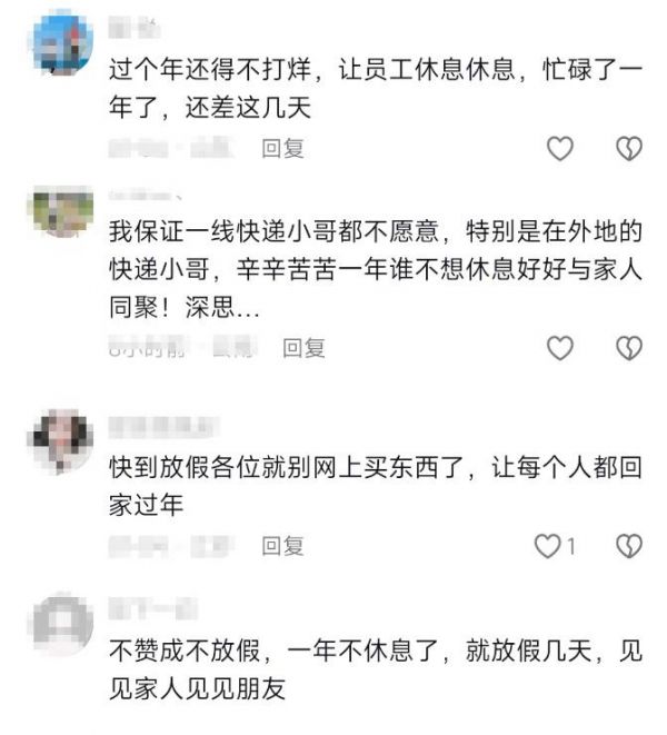 除了消费者,也有不少快递员对“春节不打烊”服务表示不满。