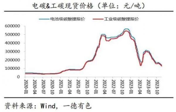 另一个次要的原因是:2022年锂矿的价格暴涨,碳酸锂高峰时达到每吨近60万,是底部价格的6倍以上。2023年厂家有很多在2022年高位接盘的锂库存,这给2023年新能源车电池成本造成了一定压力。