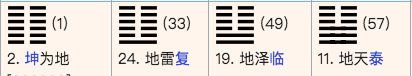 汉朝时候,人们讨论《周易》时,盛行一种理论:把《周易》中的六十四卦,与一年里的不同时间一一对应。按照后世最常见的版本,农历的十月、十一月、十二月、正月,分别对应坤、复、临、泰四卦。