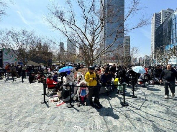 【火爆盛况!#静安寺苹果店开业前大排长龙#】今晚19点,位于上海静安寺的Apple store零售店#Apple静安#将要开业,在开业前夕,@新浪科技 编辑到此地探访。时间还不到中午,就已经有近400人在此地排队,现场人头攒动,人气火爆,据现场的保安说早上7点就很多人排队了。