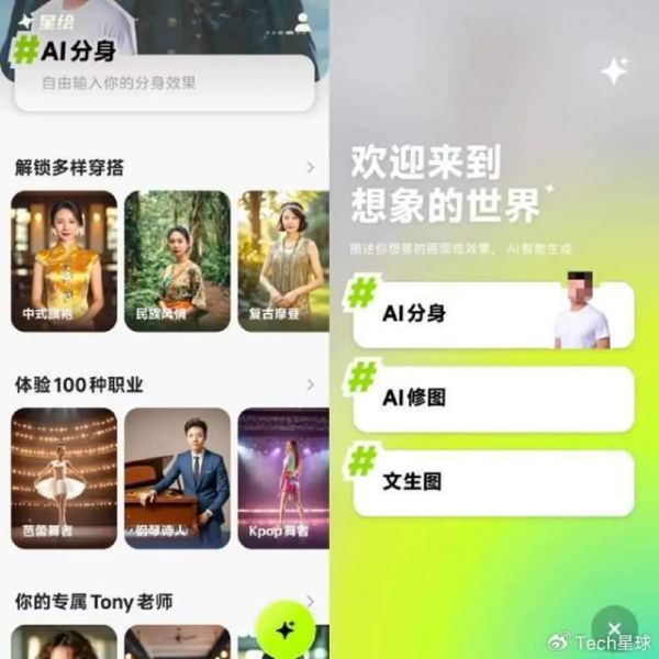 据悉,星绘提供丰富的AI生图能力,可以创建处在AI世界的用户,还能够定制多样的分身效果。