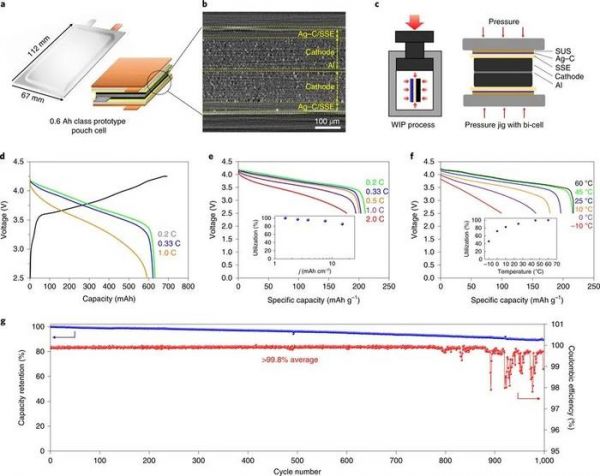 为什么三星的固态电池,具有如此强悍的性能?我找到了三星2020年3月,发表在《自然-能源》上的一篇论文,原来它的关键,是采用了银碳复合负极,及硫化物电解质,并利用了一种热等静压技术,来改善电极和电解质之间的接触,从而获得了高能量密度,稳定的库仑效率和长循环寿命。