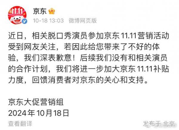 眼看事态苗头不对,京东先是悄悄隐藏了相关微博,隔天又贴了一封道歉信,特别说明了后续无合作计划。
