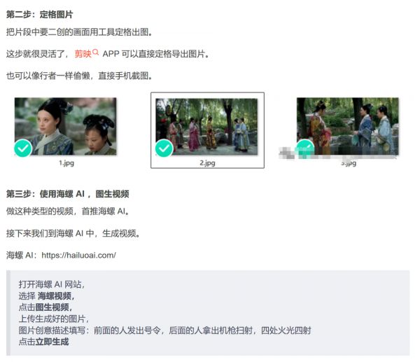 当时,网上有教程将海螺AI与《甄嬛传》的“魔改”关联,认为它可以利用该剧画面快速生成改造后的片段。(目前《甄嬛传》版权在乐视网手中,乐视2018 年将该剧播放权分销给优酷。)