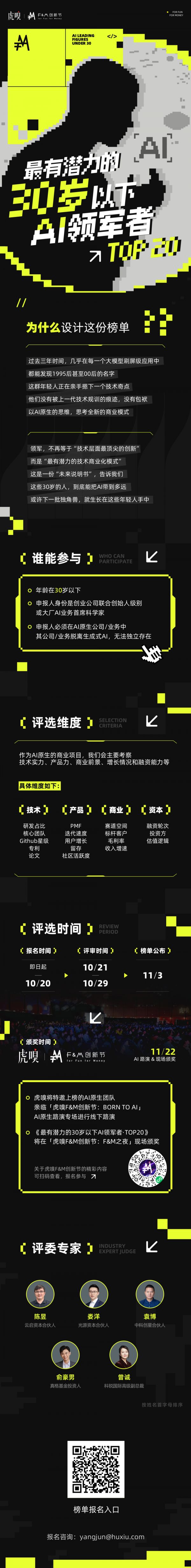 是的,虎嗅科技组“AI原生100”栏目正式发起《最有潜力的30岁以下AI领军者·Top20》榜单。