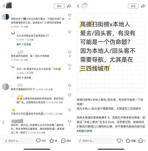 不看好的用户也不少,疑虑主要集中在榜单依赖导航行为。有用户评价,“本地人和回头客根本不用导航,这是否是个伪命题?”“商家又要卷新的游戏规则”。