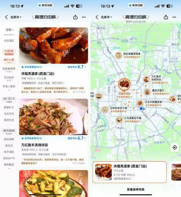 目前,高德扫街榜已覆盖全国300多个地级市,有160万个商家上榜,包括87万家餐厅、23万家酒店和近5万个景区。
