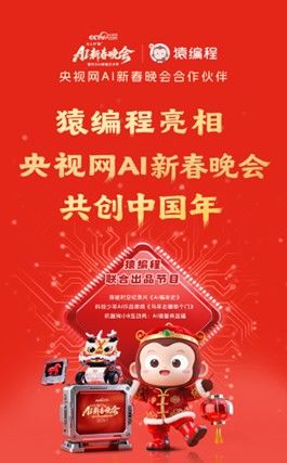 本次晚会,猿编程共创出品两大节目——《AI编年史》《马年去哪串个门》,同时猿编程机器狗小8(猿编程8号)也成为央视网晚会AI瑞兽,带来趣味互动和花样拜年。这些节目不仅展示了AI技术的发展历史,更以极具教育深度的创意形式,在阖家团圆的春节时刻,生动诠释了科技向善、创新育人的时代精神,为全国观众留下了深刻的科技启蒙印记,成为整场晚会中富有创意与温度的记忆亮点。