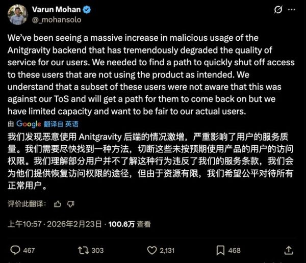 执行此次封禁的 Varun Mohan 此前带着自己的团队并入谷歌 DeepMind,一手搭起了今天的 Antigravity 平台。