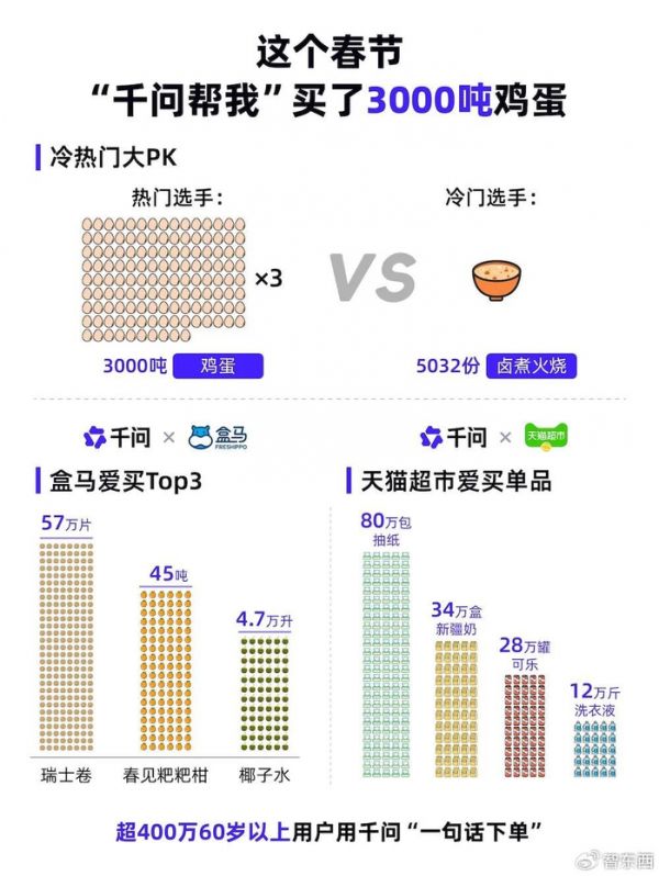 春节期间,千问的“30亿大免单”把这种体验推到台前,9小时订单量破1000万。仅2月6日一天,用户便在千问里说出3000多万次“帮我买”。