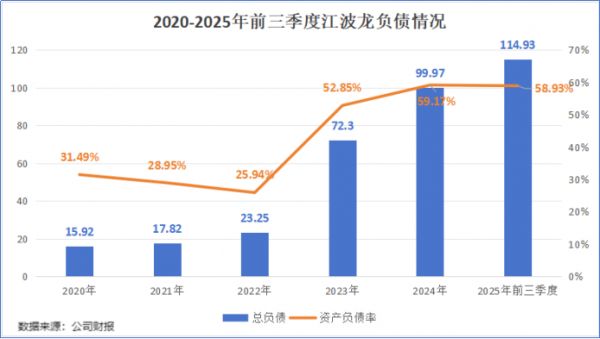截至2025年三季度末,公司总负债达到114.93亿元,对应资产负债率升至58.93%。