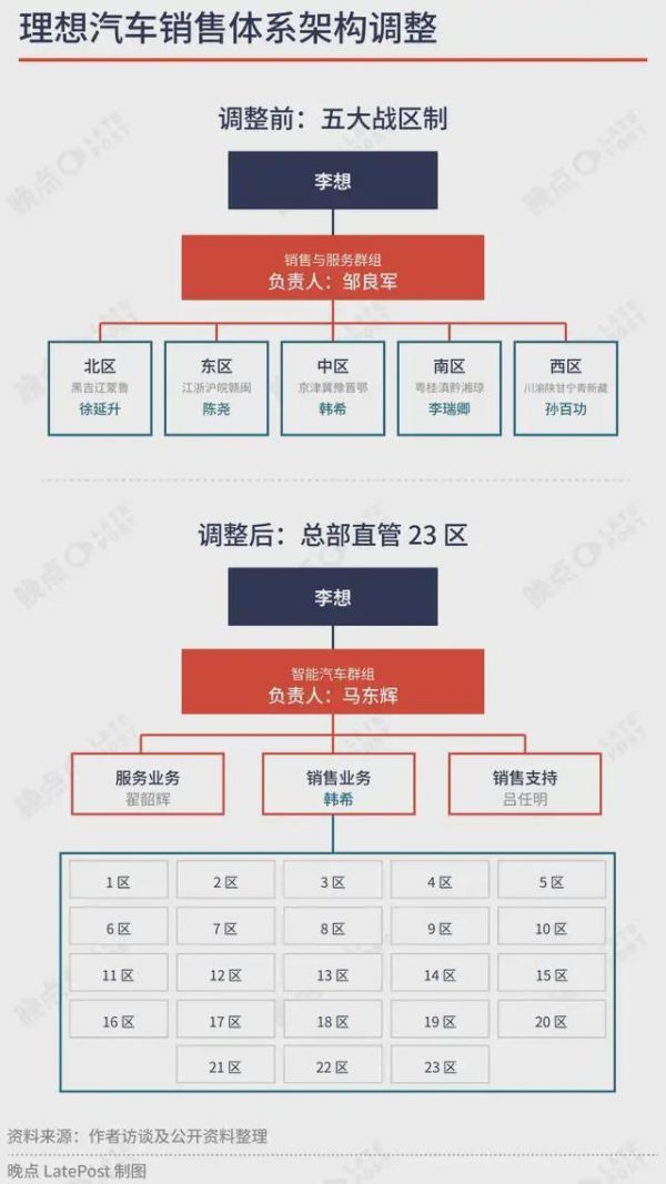 去年 6 月,理想销售和服务群组由原来李想直管的一级部门,变成向总裁马东辉汇报的二级部门,和研发与供应群组合并组成新的智能汽车群组。原销服高级副总裁邹良军转任顾问,这在内部是一种对于离开的体面说法。