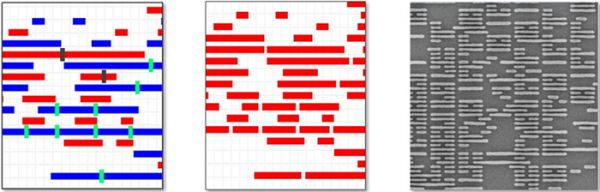 在2000年代中后期,先进逻辑芯片的设计在最关键的层中从二维电路布局转向了一维曼哈顿布局。这种设计上的“代价”是为了扩展193nm浸没式光刻技术的应用范围,使其能够实现更低k1值的单次曝光和多次曝光,从而为0.33NA EUV光刻技术的成熟做好准备。在二维双向设计中,曼哈顿几何结构用于在垂直和水平方向上形成电路。相比之下,一维或单向设计则仅在每一层中沿垂直或水平方向排列结构。尽管一维曼哈顿布局能够提供高密度的表示,但它也存在一些局限性。例如,当需要将一条金属线与相邻的金属线连接时,必须增加一层带有通孔的结构——这不仅会增加晶圆成本,还会增加电流路径的长度。