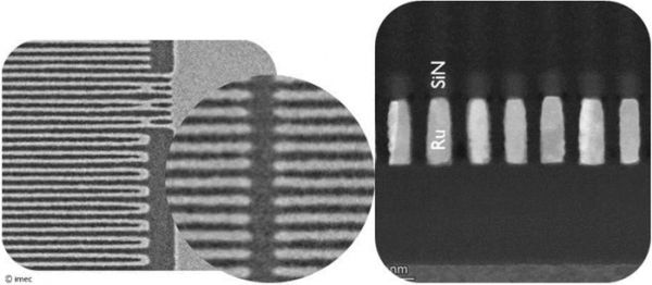 2025 年,imec 展示了20nm 间距的金属化线结构,该结构适用于工业大马士革金属化工艺,并展示了采用直接金属蚀刻(DME) 金属化方案获得的20nm 和 18nm 间距的 Ru 线。这种极高的分辨率是通过整体方法实现的,该方法涉及对光学邻近校正 (OPC) 技术、光掩模、光刻胶、底层和蚀刻工艺及材料的协同优化。