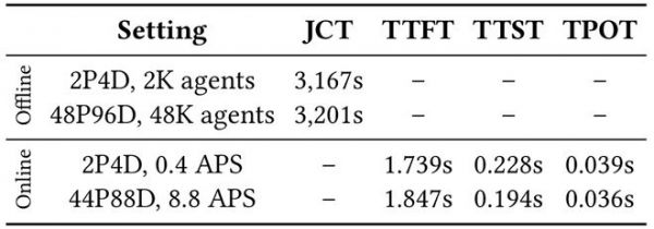 大规模部署不仅减少资源碎片化,还为并行度和P/D比例调优提供更大灵活性,同时在突发在线请求场景下提供更多调度空间以缓解排队延迟。