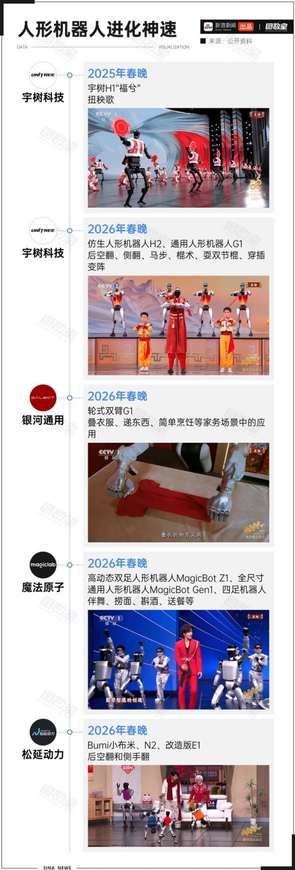 当2025年春晚的聚光灯下,宇树科技的H1“福兮”机器人踏着喜庆的鼓点扭起秧歌时,观众席爆发的欢呼声还带着一丝对“机械萌宠”的新奇与宠爱。然而,仅仅过去一年,当2026年的钟声再次敲响,舞台上的主角们已经完成了一场足以颠覆想象的进化。
