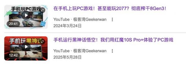 而 GPU 能力也在快速逼近轻量级独立显卡,一些旗舰手机已经开始尝试运行 PC 端 3A 游戏。早前雷科技就用红魔 9S Pro(骁龙 8 Gen 3)测试过,极客湾这几年也陆续做过这类测试。