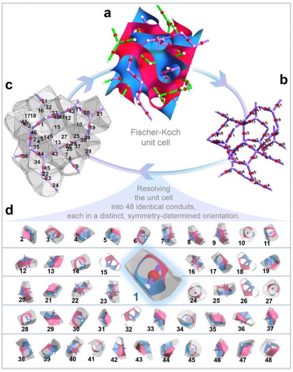 Fischer-Koch 结构分割解码为48个仅在取向上存在差异的相同单元(来源:上述论文)