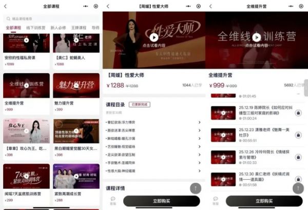 值得注意的是,除了“性商教母”周媛,类似的“性商训练”“情感课程”,早已逐渐形成一种高度同质化的商业模式。