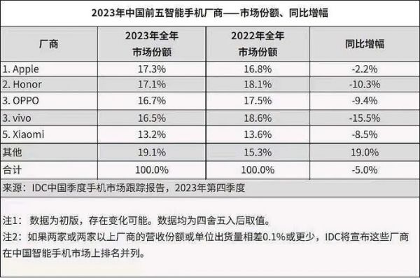 所以,荣耀在刚独立的那两年,份额是一路狂飙,到2022年,独立仅两年的荣耀就走走上了巅峰,以18.1%的份额成为国内TOP3品牌,2023年,也是一样的。