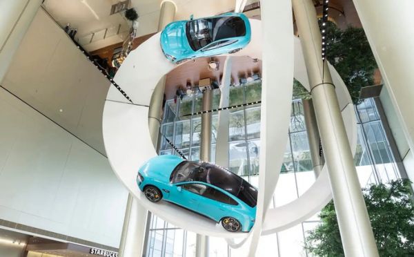 第二张照片是丽文在小米汽车工厂中的体验中心拍摄的,在这张照片中,两辆蓝色的小米SU7停在莫比乌斯环上,从上面俯视,给人带来的视觉冲击非常大。丽文专门发了这张照片,说明她也非常喜欢小米汽车。