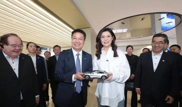 第四张照片中,小米汽车赠送丽文一辆小米汽车的车模。这个礼物非常有纪念意义,既是丽文对小米汽车工厂自动化生产线的见证,也是丽文对小米汽车将AI应用到生产中的赞叹。