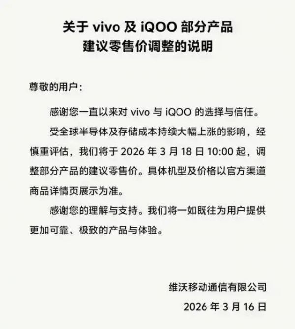 这个成本压力对绝大部分手机品牌都不友好。OPPO、vivo、荣耀等品牌在2026年初就陆续调整了产品售价,不少中端机型涨幅达到300-500元。