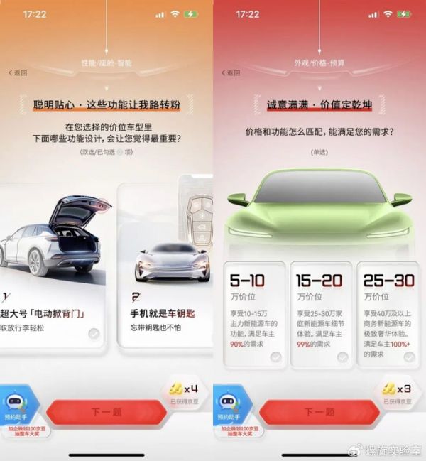 去年,京东上线了“国民好车”的定制活动,共收到超30万份调查问卷,用户不仅可以自行选择基本配置,还可以提出个性化的需求,比如车载麻将桌、宠物专用空调等。京东产品经理表示,虽然这些意见不能全部实现,但也帮助优化了汽车后排空间和空气净化系统。