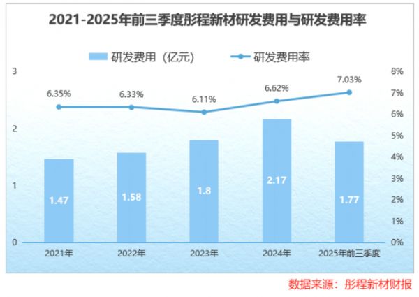 2021年到2025年前三季度,彤程新材研发费用累计达8.79亿元,研发费用率保持在6%以上。2025年上半年,公司推进近50项半导体光刻胶研发项目,重点项目占比近半。