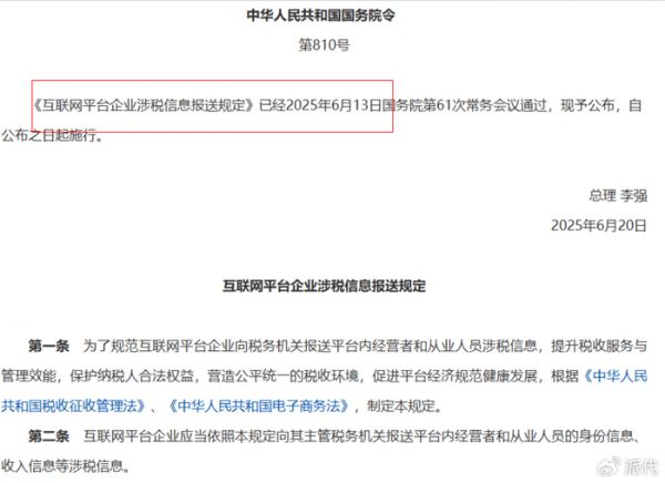 最重要的变化,是数据越来越透明。2025年实施的《互联网平台企业涉税信息报送规定》,要求平台企业按规定向税务机关报送平台内经营者身份信息和收入信息,这意味着平台交易数据将进入监管视野。