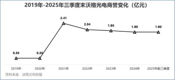 此外,收购带来的潜在商誉压力,也成为悬在公司头顶的达摩克利斯之剑。2020年沃格光电商誉仅0.38亿,2021年高达2.41亿,虽然2025年三季度末,公司商誉降至1.9亿,综合来讲也不算低。