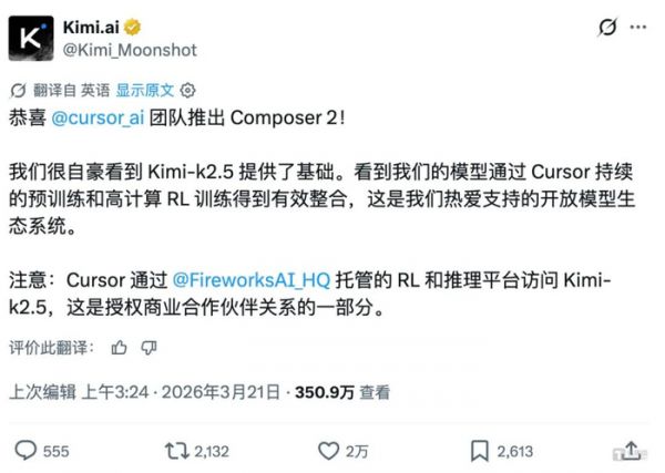 2026年3月,有硬核开发者设了拦截代理发现:Cursor一直吹捧的“自研前沿模型”Composer 2,底层竟然套用并微调了中国月之暗面开源的Kimi K2.5模型!