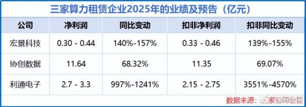 这也是为什么,“算力租赁三雄”宏景科技、协创数据和利通电子,在2025年集体迎来了业绩高光期,净利润都有不错的增幅。