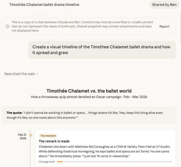 Inc.的记者做了个测试:让Claude生成Timothée Chalamet争议事件的交互式时间线。