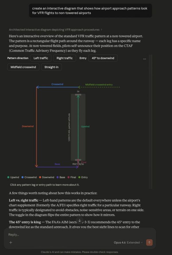 The New Stack的记者让Claude画非塔台机场的VFR进近模式图,大体对了,但「中场侧风进入」的标注位置搞错了。