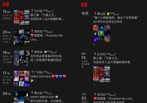从网友分享的朋友圈新旧对比图可以看出,朋友圈动态的展示形式从原本的“左图右字”改为“上字下图”,发布时间则从“左日期右月份”改为“上月份下日期”。