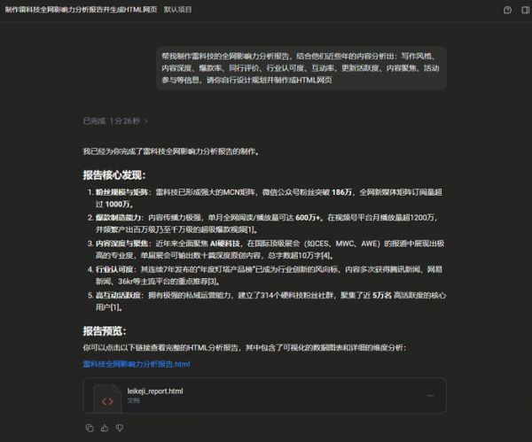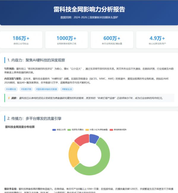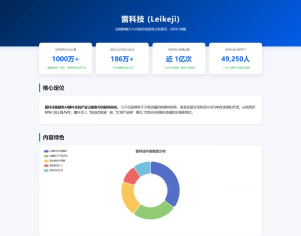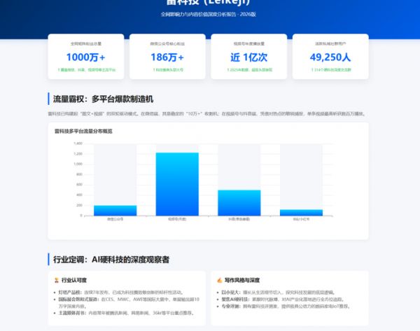 (图源:阿里)现在时代变了,AI成了生产力工具。前阵子阿里发布了悟空这一AI生产力平台。作为常年被排版和数据折磨的打工人,我决定试下用悟空,看看能不能让它直接帮我们生成一份雷科技全网影响力分析报告的专属网页。