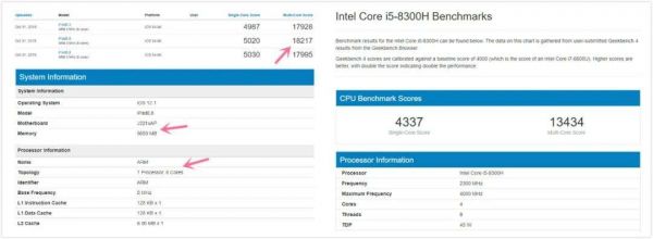 在当时,苹果官方表示A12X超越92%便携式PC的性能。从GeekBench 4.3测得的数据可以看出,苹果并没有说谎,A12X单核5030分,多核18217分,而英特尔标压的i5-8300H单核只有4337分,多核13434分。