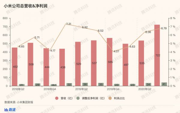 尽管受新冠疫情的影响,小米在经历了今年第一季度的营收下滑后,随即又重新回到了增长的轨道中来。尤其是随着这一季度智能手机出货量的增长,小米的总营收得到了创纪录的722亿元,同比增长34.5%;经调整净利润41亿元,同比增长18.9%。