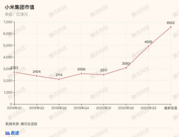随着小米业绩的不断提升,小米集团的市值也在不断地创造新高,昨天小米的市值首次突破了6500亿港元,尽管今天股价小幅下滑1.63%,但总市值依然达到6552亿元。