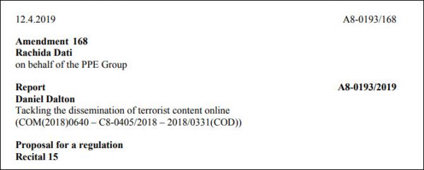 4月12日,现欧洲议会第一大党“欧洲人民党”曾就此提出了一则修正案,称原提案中“非法内容必须在一小时内被删除”的规定“不合情理”,因为那些个人或小公司运营的平台几乎不可能靠人力来实现这项规定,而如果通过后台来进行自动过滤的话,又将面临“侵犯言论自由”的风险。